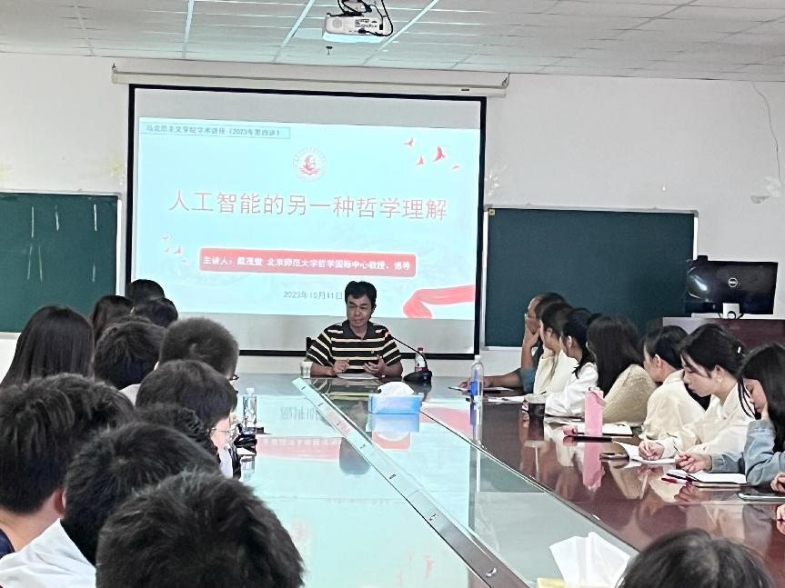 系列学术讲座(第四场)”,此次活动邀请到了北京师范大学哲学国际中心教授、人工智能伦理治理实验室主任、博士研究生导师戴茂堂教授,他为我院师生带来了一场题为“人工智能的另一种哲学理解”的精彩讲座。讲座由学院副院长涂江波教授主持。