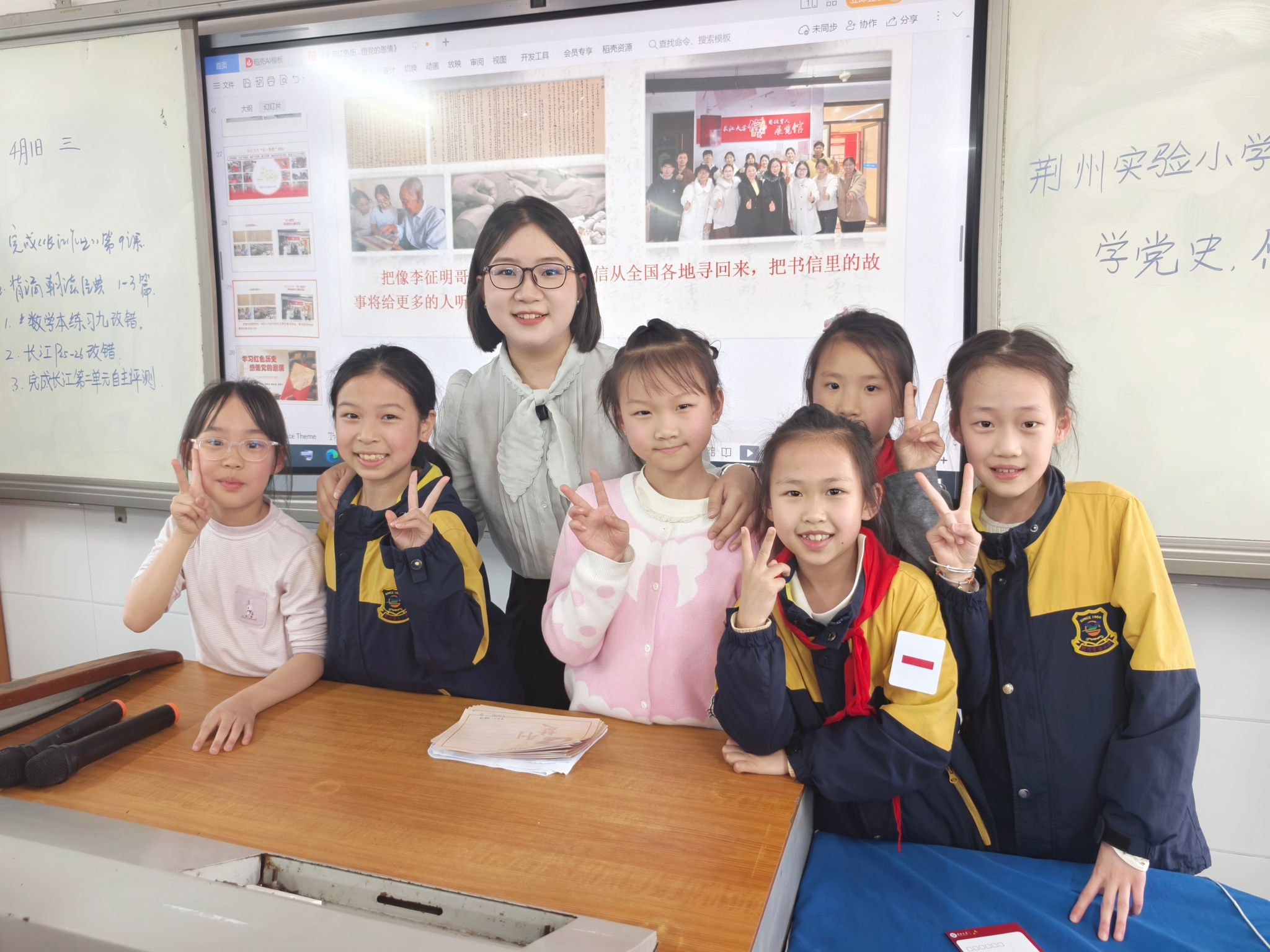 “李征明哥哥在信里,一边说着给妹妹买钢笔的小事,一边说着要杀敌立功、争取见到毛主席的大事!”袁田指着大屏幕上的家书扫描件,绘声绘色地为孩子们解读“表情包”,“对于他来说,爱自己的家,和保卫自己的国,是分不开的!”从欢声笑语到静默,孩子们眼睛亮晶晶地望向屏幕。那一刻,没有说教,只有童心与历史的同频共振。