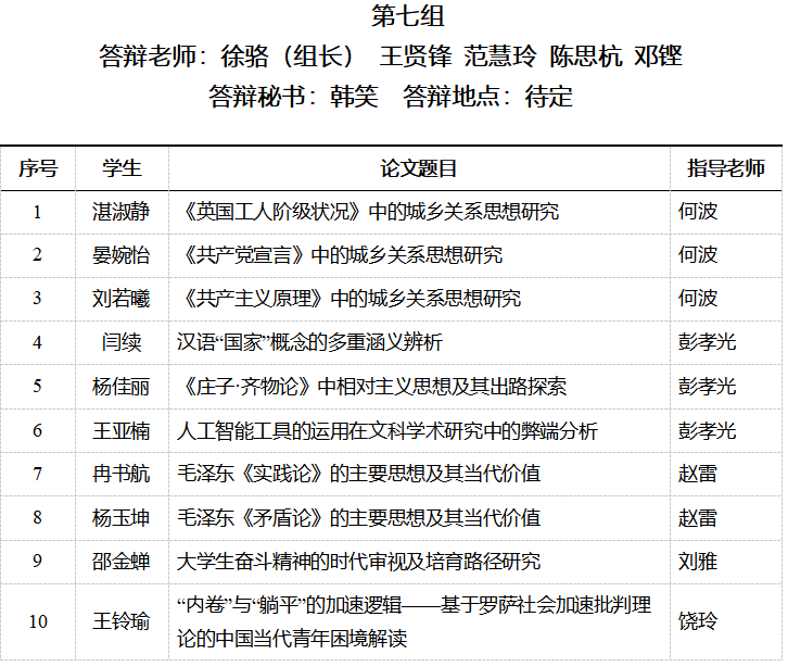 1.学生应根据分组情况,于2026年04月22日下午3点前向所在答辩组学生组长(第一个汇报的学生)提交目前已经撰写的毕业论文(无需写完)纸质X(X=小组评委老师线下人数)份,组长收齐后按答辩顺序放置各答辩会议室,供评委教师审阅。有线上评委的小组需收齐电子版文献综述打包发给线上评委(文件命名:答辩序号+姓名+论文题目)