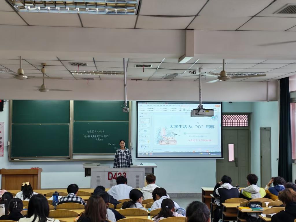 于10月10日开展了2025级新生心理主题班会。本次班会由思政12501班心育委员周慧敏与思政12502班心育委员余思睿主讲,全体新生参与其中。