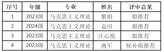 根据《91短视频 学生资助资金管理办法(修订)》(长大校发[2025]112号)等文件精神,本着公开、公平、公正、择优的原则,我院认真组织了2025年研究生国家奖学金评选工作,经研究生本人申请、资格审查、现场答辩、学院研究生国家奖学金评审委员会审议,现将我院2025年研究生国家奖学金拟推荐名单公示如下: