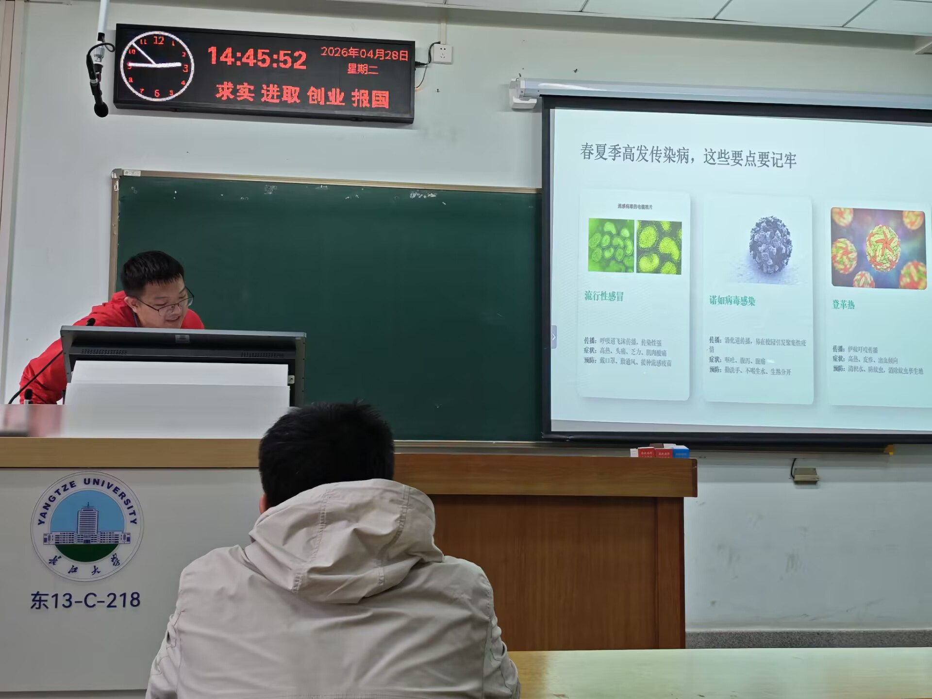 班会现场,班主任重点围绕传染病防治、防诈骗、交通安全、财产安全、生命安全、食品安全等方面进行了安全常识宣讲。随后,全体同学完成了以防诈防溺·网络安全为专题的安全知识答题活动,集中学习了学校下发的假期安全提示。副班长兼安全委员就节假日请销假手续办理流程作了详细说明,并整理登记了全班同学的留离校情况。