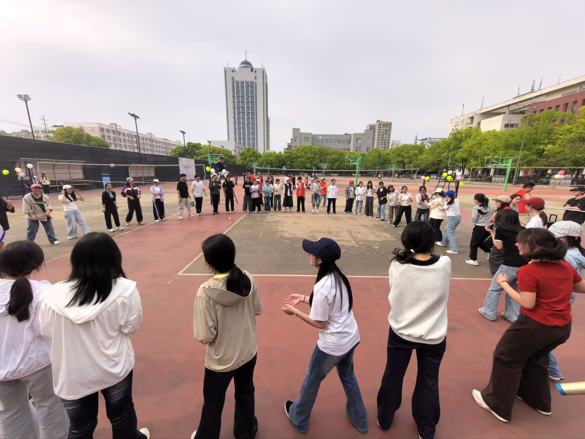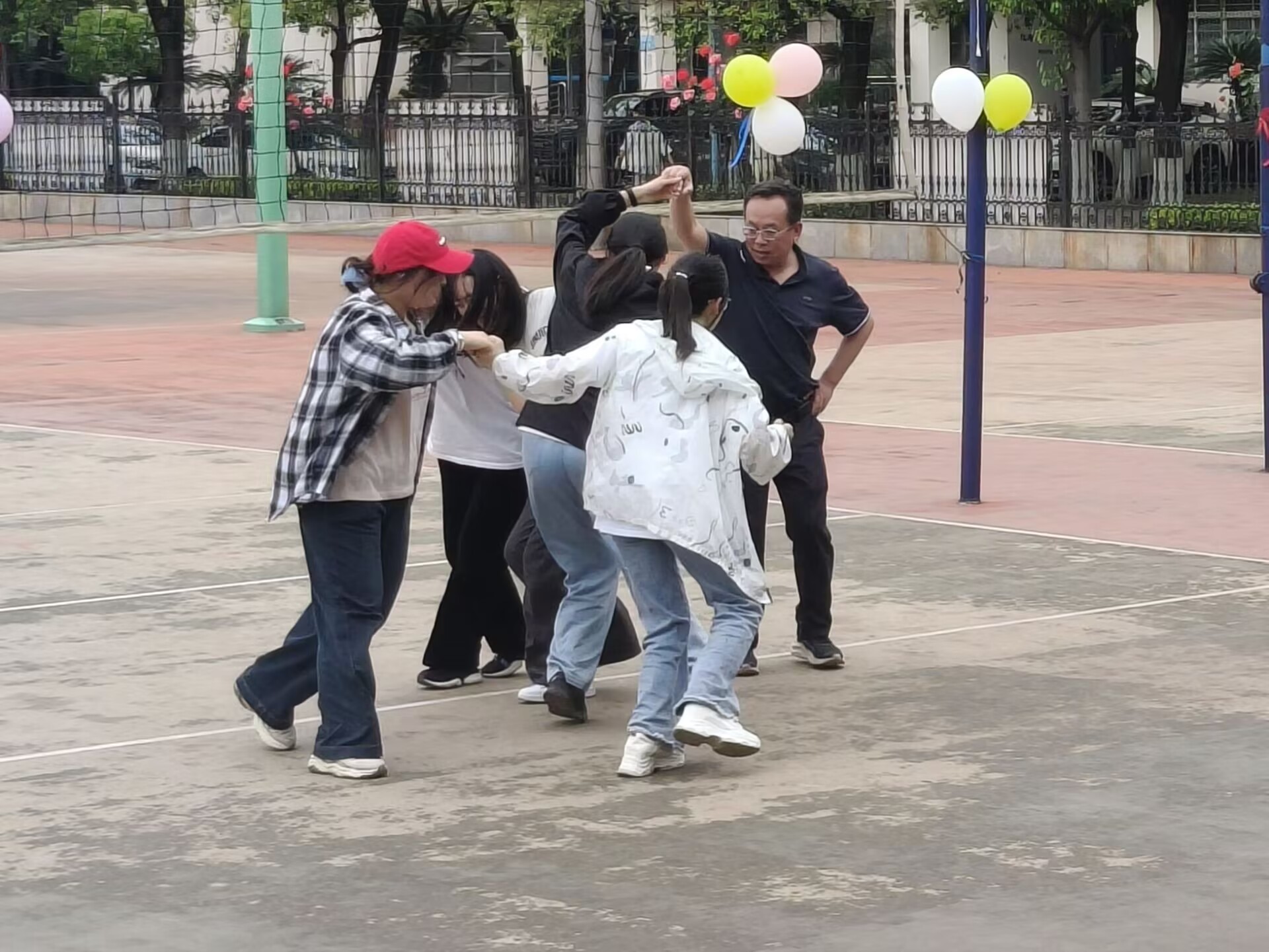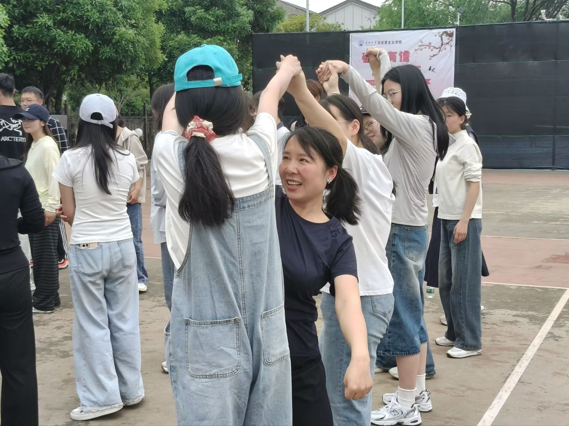在13教旁篮球场举办“春风有信,心路同行”心趣探索营暨师生春日见面会。学院党委书记刘小燕、党委副书记竺正海、学工办主任张云雾、辅导员邓鹏、思政12401班班主任饶玲等老师与2025级全体本科生共同解锁师生互动的温暖瞬间。