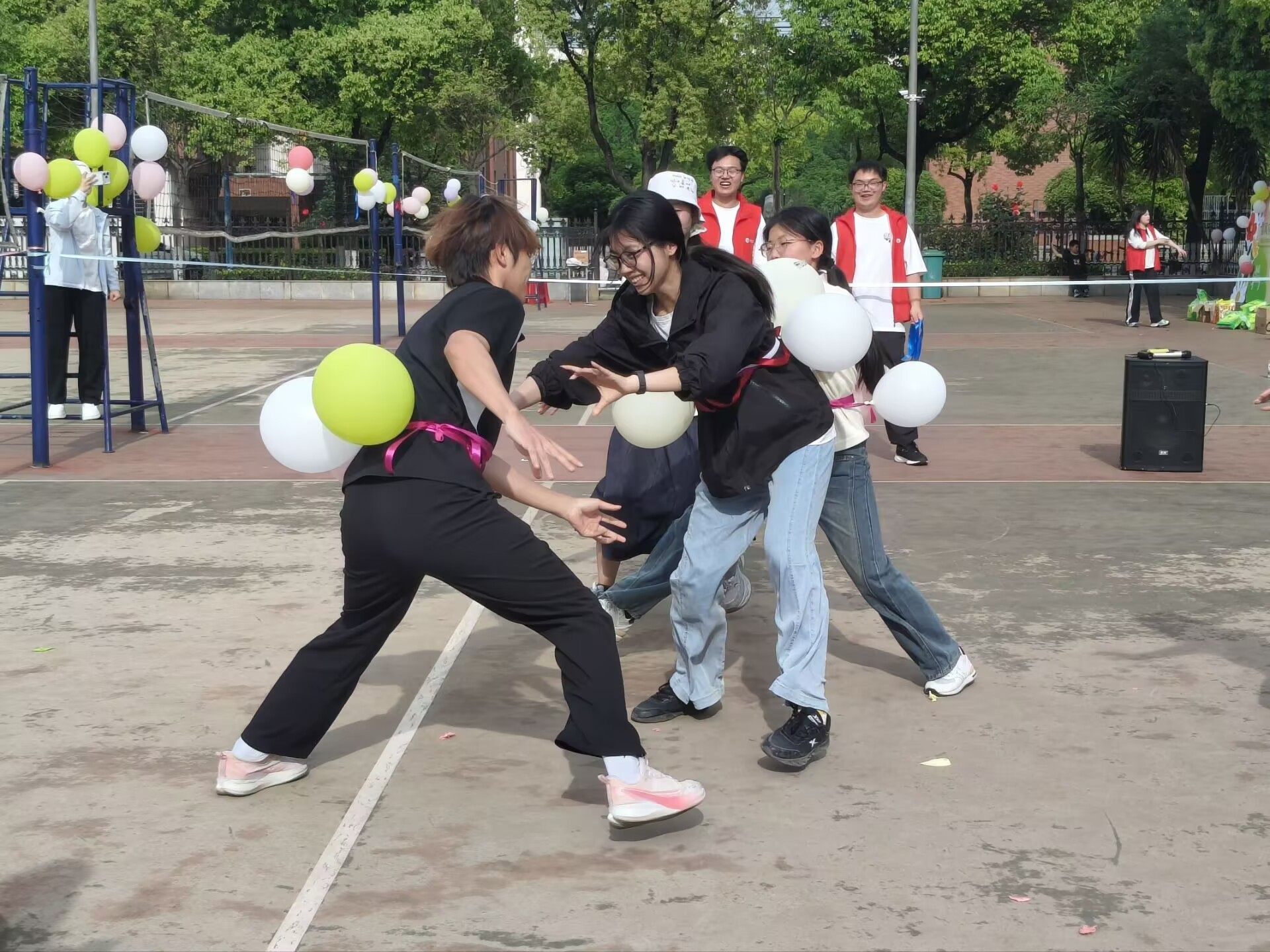 活动现场氛围轻松温馨,明信片交换、趣味团体游戏两大环节共同开展。同学们书写寄语、互换明信片,传递温暖心意;穿针引线、乒乓接力、捏气球、跳大绳等一系列富有趣味性与协作性的团体游戏依次开展,同学们踊跃参与、分工协作,彼此配合默契、齐心协力,在欢声笑语中尽情释放压力。师生们一同投身游戏,打破课堂界限,在互动中拉近了距离、增进了情谊。现场加油声、欢笑声此起彼伏,处处充满青春活力。大家通过游戏积累积分,凭借努力兑换精美奖品,在轻松有趣的互动中收获快乐,增强了团队凝聚力与协作意识。